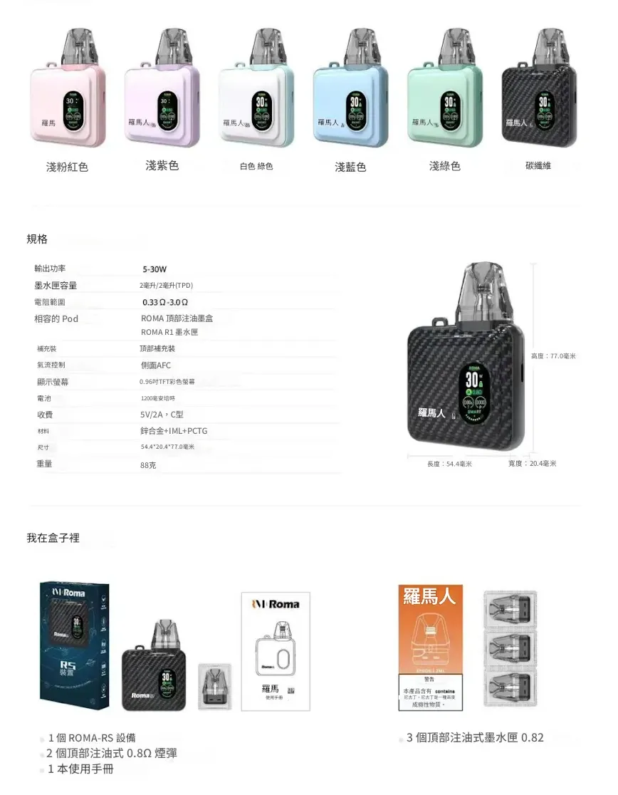 不論你追求外型質感、螢幕互動、續航能力還是口感調校,ROMA RS PRO 都是一款兼具性能與樂趣的升級型注油主機。