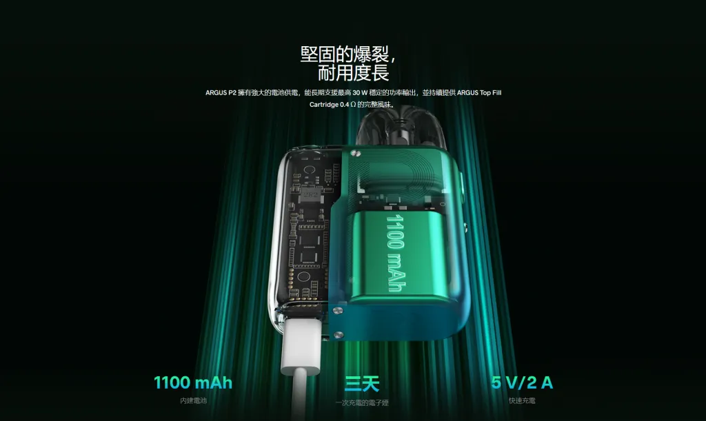 大容量 1100mAh 電池提供長時間使用續航,Type-C 快充設計可迅速恢復最佳霧化狀態,滿足每日使用需求,是通勤族與新手玩家的理想之選。